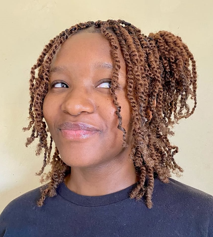 Express your creativity and individuality through diverse styling options and color combinations! If you’re not a big fan of intricate styles, stop at the last, and enhance the visual impact of your twists with the rich caramel hue.