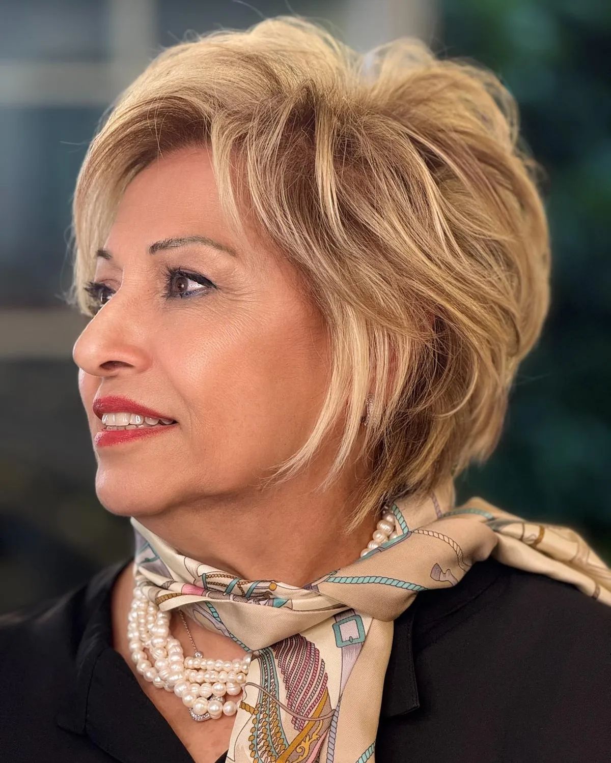 If you want this signature hairstyle, ask your hairdresser for a cut with layering that can be feathered out to add volume, texture, and interest to your look. Such an iconic crop will work particularly well for mature women.