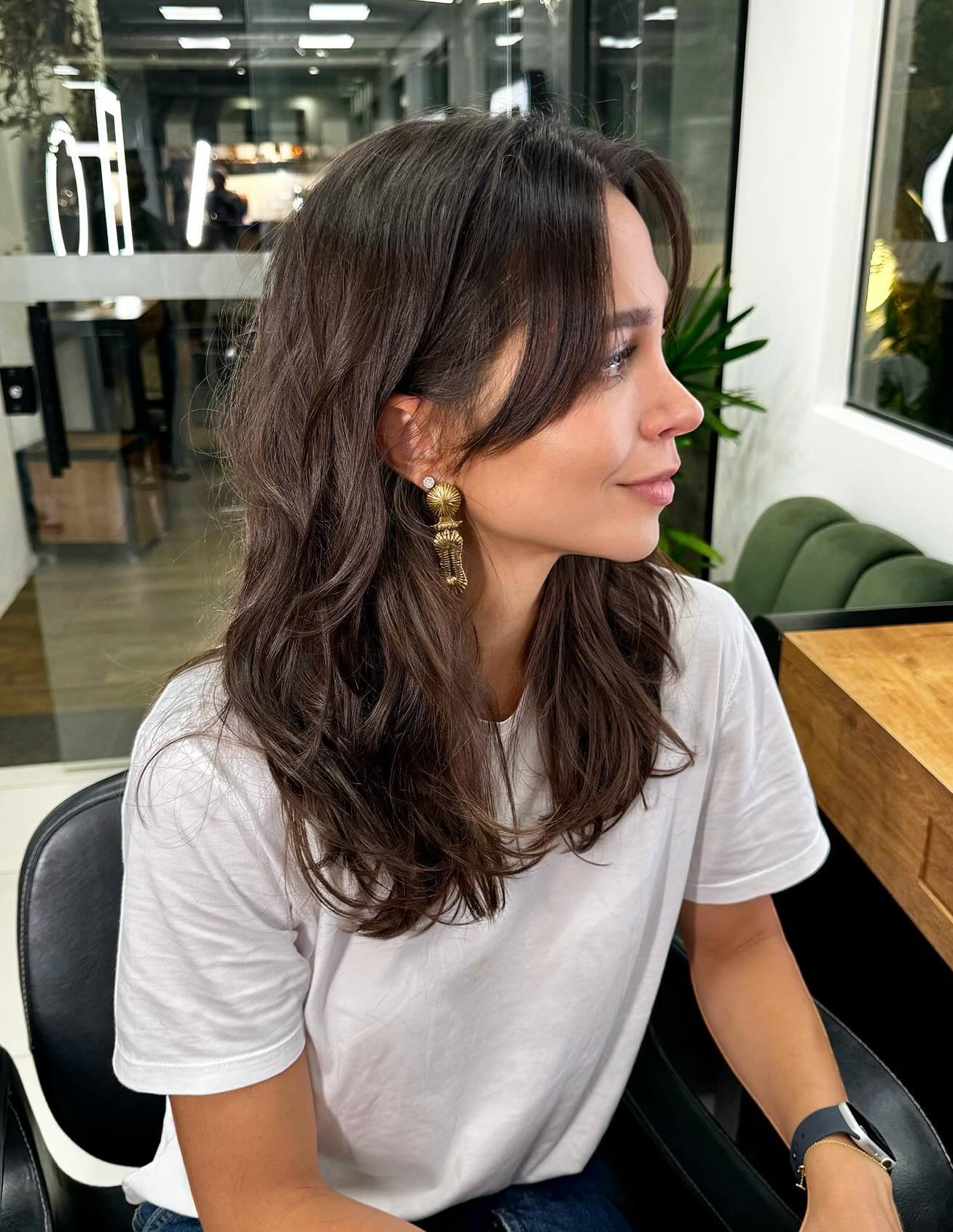 Shags are fantastic cuts because the volume-packed styles are the best at showing off full hair. Amp up the messy meter of the hairdo according to how natural you’d like your mane to appear. Ashier brunette shades may seem dry, so make sure to use a shine spray for healthy-looking locks.