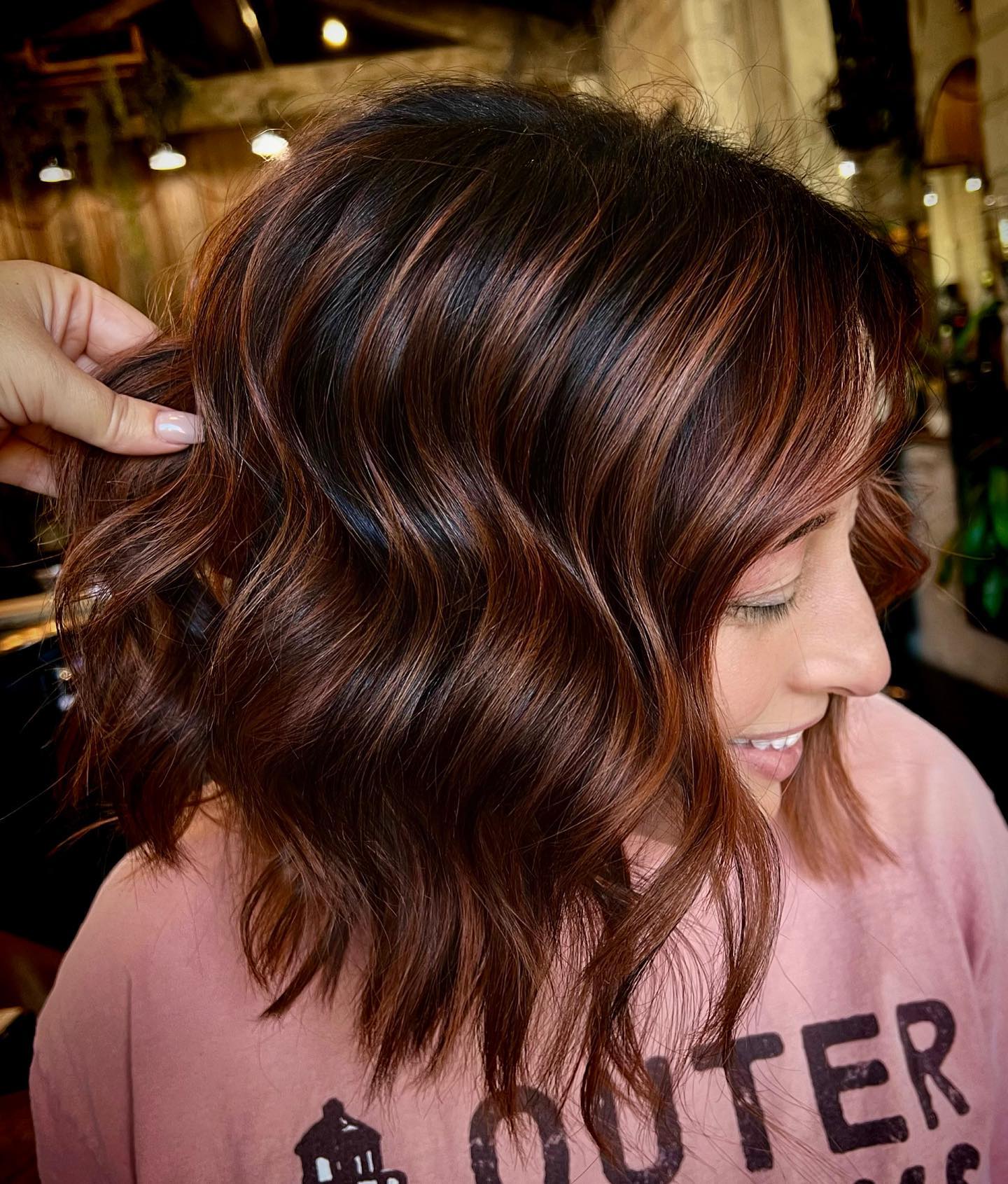 Chocolate waves and warm auburn highlights sound like the perfect combination for ladies who aren’t very open to drastic hair changes. This is an idea for brunettes who want a really delicious hair color.