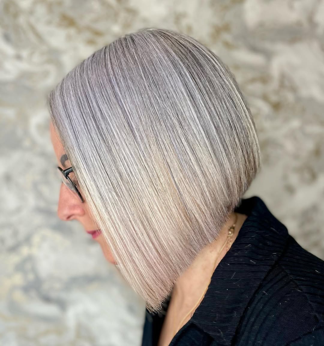 If you are embracing gray hair but want it to look intentional, a blended combination of silver hues is a gorgeous choice. Introducing some metallic shades into your natural tone keeps your hair lively.