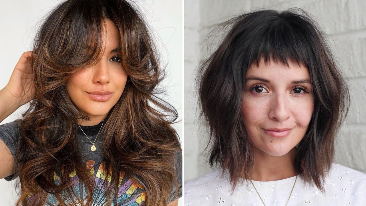 Curtain bang hairstyles are parted in the center and frame the face softly. They suit various face shapes, offering versatility and a touch of retro charm. Perfect for those who want a trendy, low-maintenance look that complements both casual and formal styles.